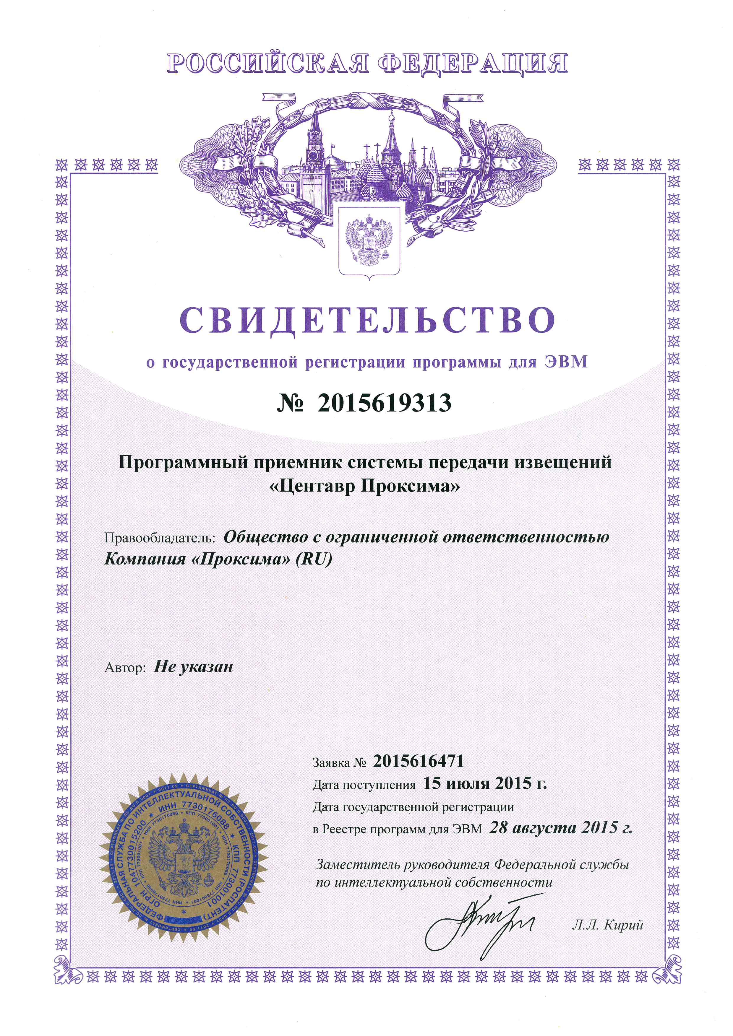 Свидетельство о государственной регистрации программы для ЭВМ
